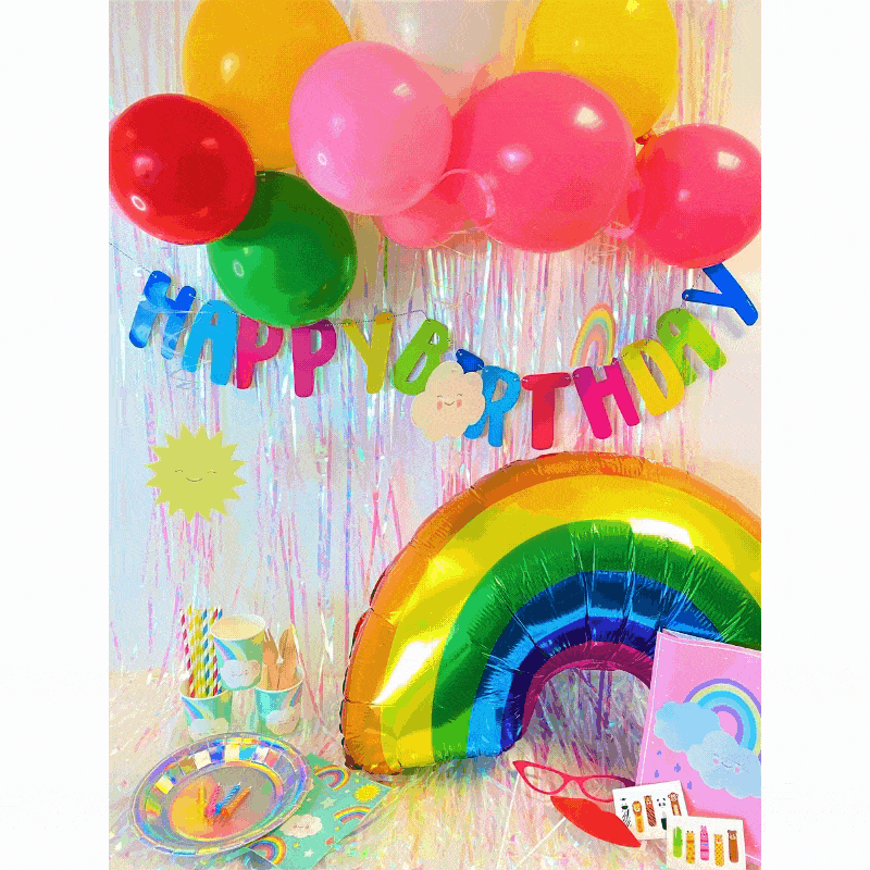 Echoan Decoration Fete D Anniversaire Ciel Banderole Joyeux Anniversaire Nuages Lune Soleil Ballon Arc En Anniversaire Gateau Topper Pompe Manuelle Ballon Pour Enfant Fete Festival Decoration Amazon Fr Cuisine Maison