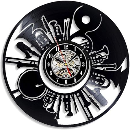 Dwqlx Instrument De Musique Disque Vinyle Horloge Murale Design Moderne Pour Salon Vintage Vinyle Horloges Murales Decor A La Maison Cadeaux Pour Musicien Amazon Fr Cuisine Maison
