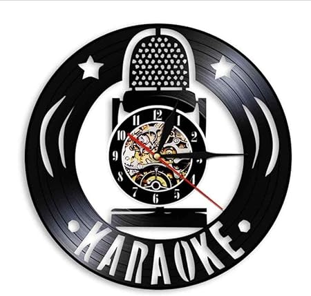 Tianzly Horloges Murales En Vinyle Karaoke Microphone Disque Vinyle Horloge Murale Design Moderne Musique Chant Unique Vinyle Noir Cd Horloge A La Main Lumiere Musicien Decor Sans Lumiere Amazon Fr Cuisine Maison