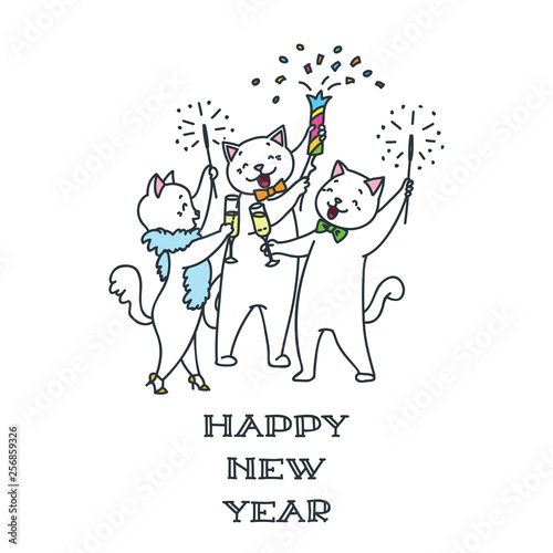 Happy New Year Illustration Of Funny Cats Having Fun And Enjoying New Year Party Template Design For Party Invitation Flyer Or Greeting Card Vector 8 Eps Buy This Stock Vector And