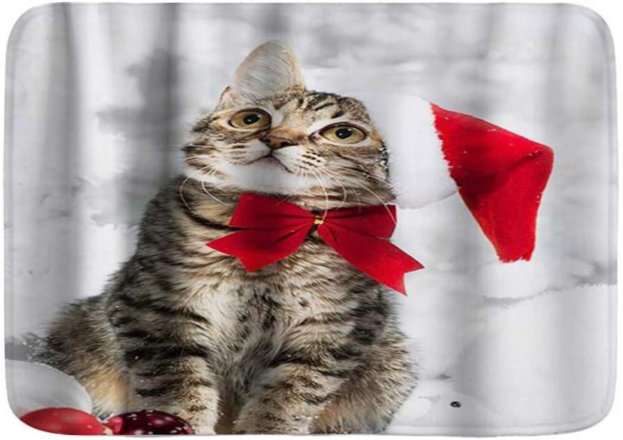 Amazon Com Mokale Bath Mat Rug Funny Cat Merry Christmas Bowknot Xmas Animal Happy New Year Plush Bathroom Decor Mats With Non Slip Backing 29 5 X 17 5 Kitchen Dining
