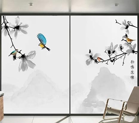 Pallima Film Intimite Pour Vitre Statique Decoratif Film Adhesif Fenetre Vitrage Autocollant Fleur Oiseau Colore 80x1cm Amazon Fr Cuisine Maison