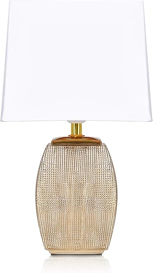 Brubaker Lampe De Table De Chevet Design Elegant Hauteur 38 Cm Pied En Ceramique Dore Abat Jour En Coton Blanc Amazon Fr Luminaires Et Eclairage