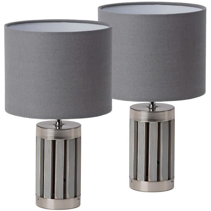 Brubaker Lampe De Table De Chevet Lot De 2 Abat Jour Anthracite Et Pied De La Ceramique Anthracite Hauteur 38 Cm Achat Vente Brubaker Lampe De Table De