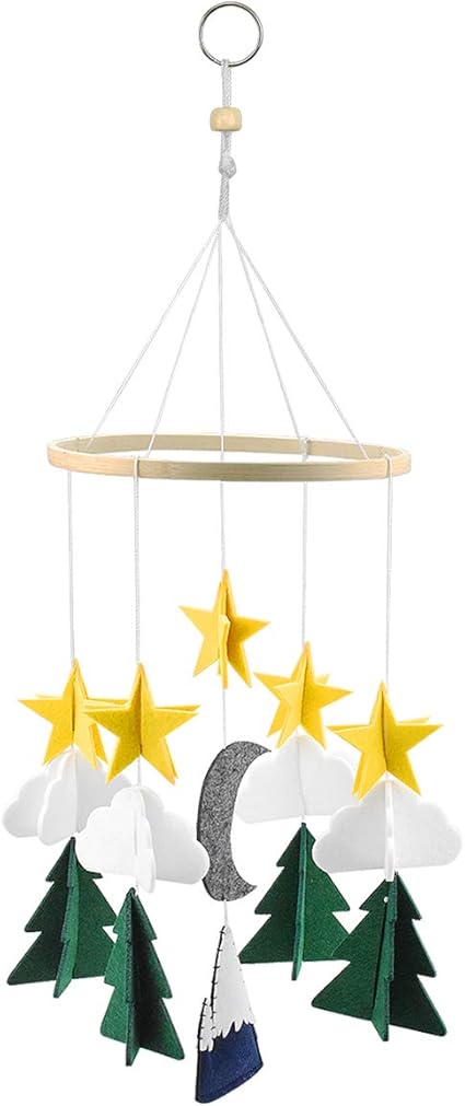 Mobile Musical Pour Lit De Bebe Suspension En Bois 6 Branche Avec Elephants Nuage Etoile Boite A Musique Ro Felt Ornaments Diy Couture Projects For Kids