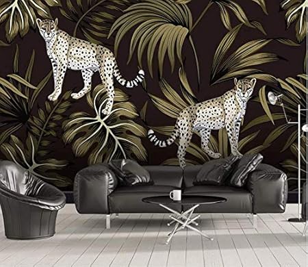 Yfxgstli Papier Peint Jungle Tapisserie Photo Poster Muraux Mur De Fond Animal Guepard Plante Tropicale Peinte A La Main W400xh280cm Amazon Fr Cuisine Maison