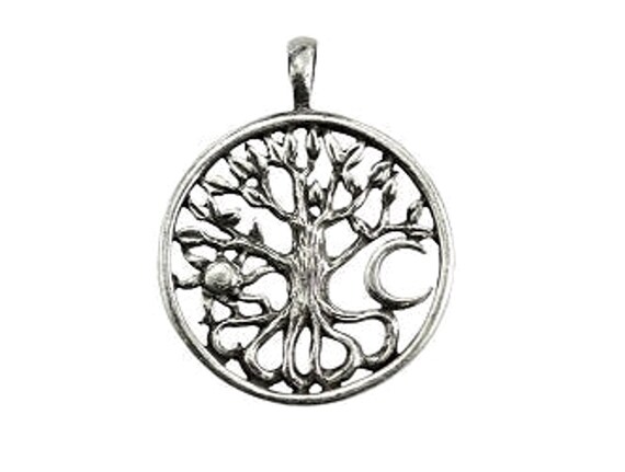 Pendentif Arbre De Vie Pentacle Lune En Argent Sterling 925 Oxyde