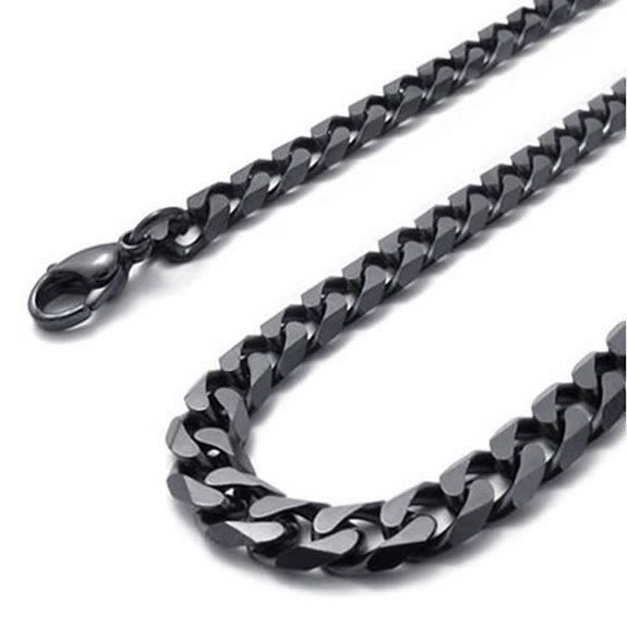 Collier Homme Chaine Maille Grain De Cafe 11mm En Acier Inoxydable Noir