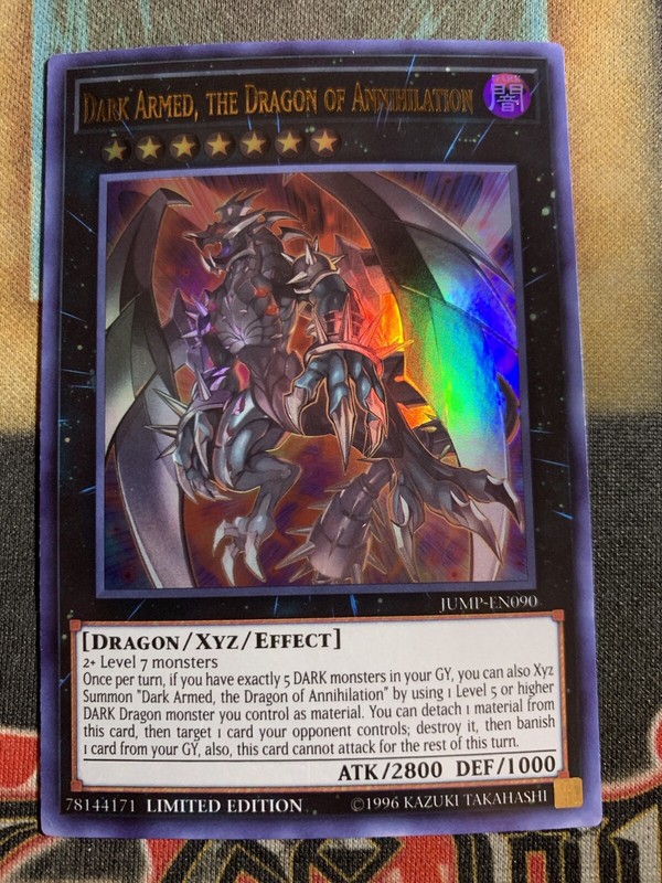 Information on the ban status of the Yugioh!. Dark Armed, The Dragon of Annihilation BLAREN050 Secret Rare 1st Edition 50 out of 5 stars 60 $277 Only 5 left in stock order soon BlueEyes Alternative Ultimate Dragon TN19EN001 Prismatic Secret Rare Limited Edition 48 out of 5 stars 803 $360. Dark Armed Dragon Types Dragon / Effect Attribute Level (7) ATK 2800 DEF 1000 Text Cannot be Normal Summoned/Set Must be Special Summoned (from your hand) by having exactly 3 DARK monsters in your GY You can banish 1 DARK monster from your GY, then target 1 card on the field;.