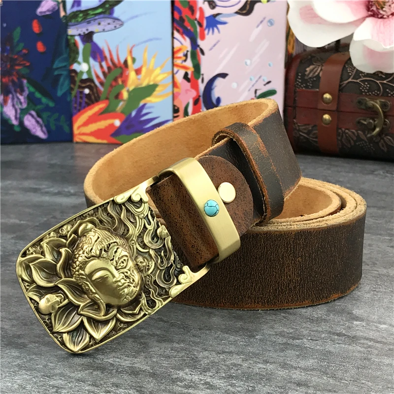 Ceinture En Laiton Bouddha Boucle Cuir Ceinture En Cuir Pour Hommes Ceinture Cowboy Pour Hommes Ceinture En Cuir Veritable Ceinture Cinturon Taille Mbt0073 Aliexpress
