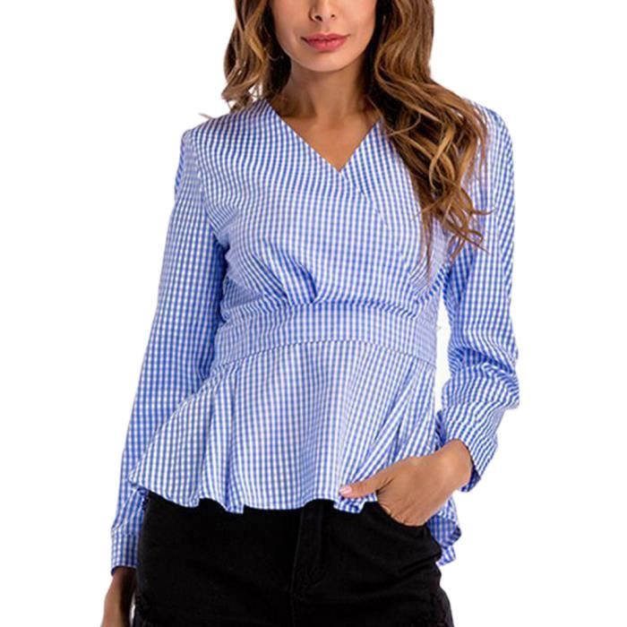 Chemisier Femme Sexy Chemise Chic Manche Longue Slim Fit Blouse Mode Elegante Tunique Col V Casual Haut Classique Shirt Bleu M Bleu Achat Vente Chemisier Blouse Soldes Sur