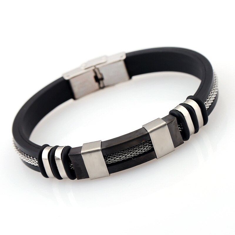 Man Men Charm Wristband Homme Style Simple Punk Black Bracelets Hombre Pulsera Rubber Stainless Bracelet Steel Silicone On Storenvy