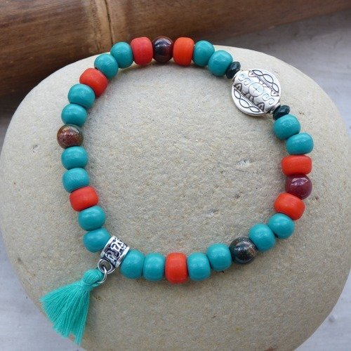 Bracelet Ethnique Chic Bleu Et Orange Bracelet Original Pour Homme Un Grand Marche