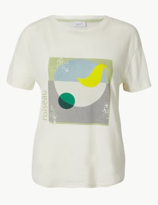 Pure Cotton L Oiseau Relaxed Fit T Shirt Per Una M S