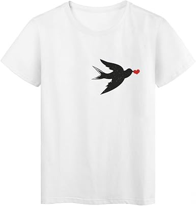 T Shirt Blanc Design Oiseau Noir Cœur Rouge Ref Tee Shirt 2174 Amazon Fr Vetements Et Accessoires