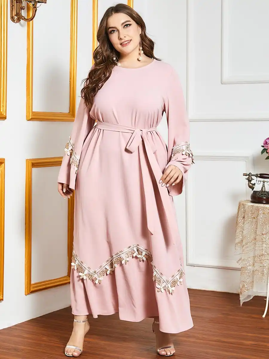 Robe Longue Ajustee Evasee Rose De Taille 36 A 48 Femme Musulmane Hijab Abaya Eur 36 00 Picclick Fr
