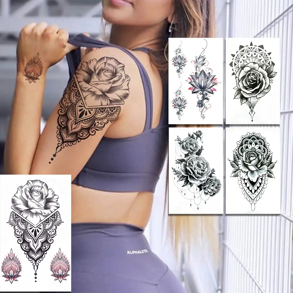 Lotus Sexy Tatouages Temporaires Pour Femmes Filles Rose Henne Fleur Tatouage Papier Art Corporel Bras Noir Pivoine Pendentifs Faux Tatoo Chaines Aliexpress