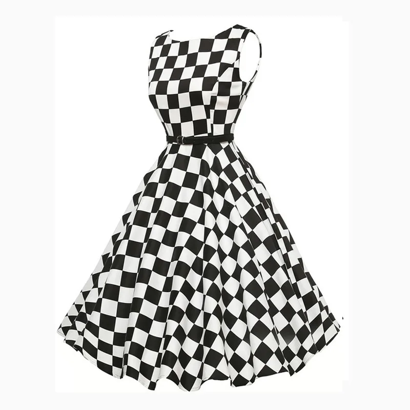 Women Black White Plaid 50s Dresses Summer 18 Femme Robe Vintage