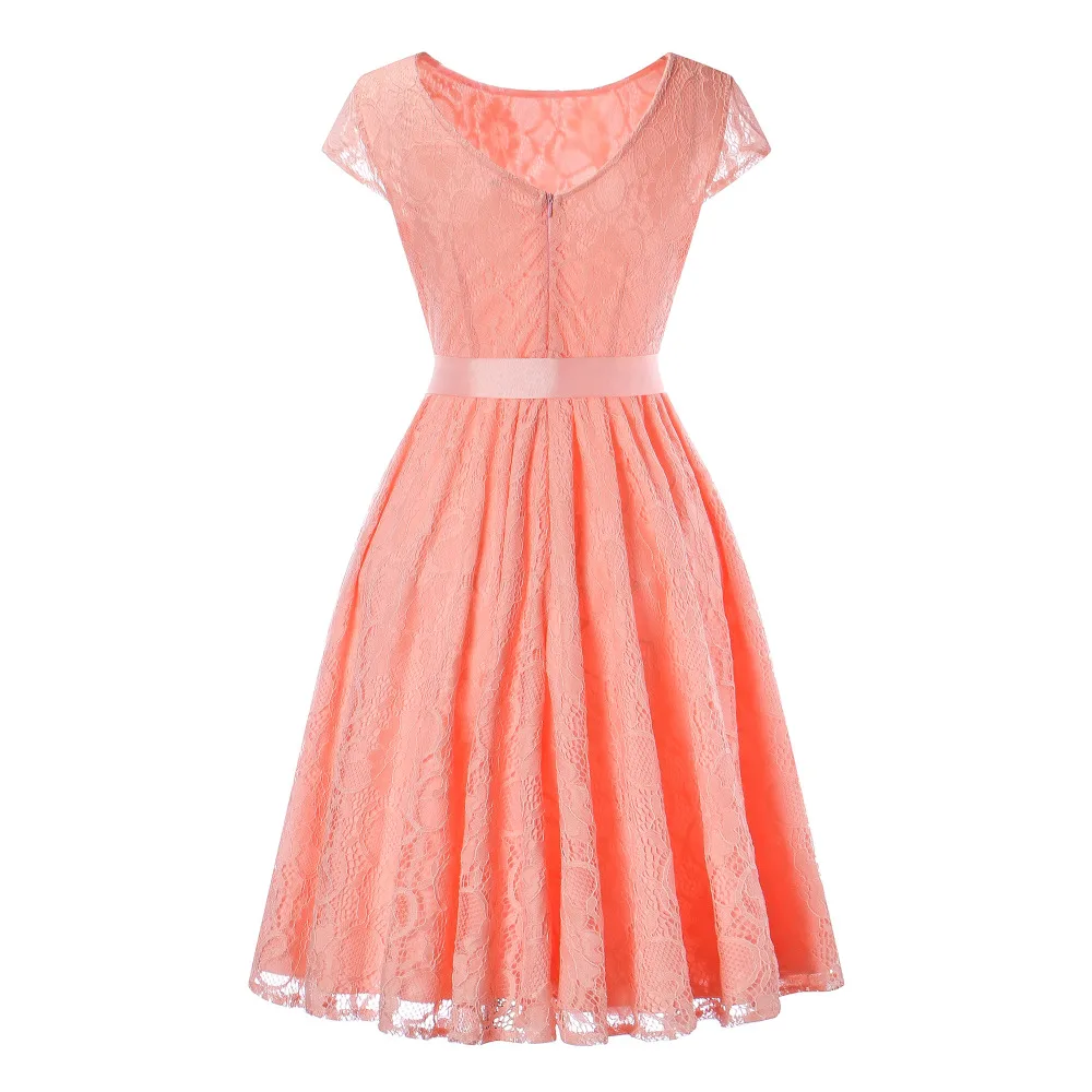 Robe Femme Vintage Floral Lace Dress Women Short Sleeve 50s 60s Retro Simply Design