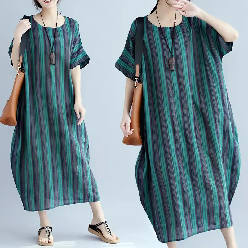 Striped Dress Women Summer 19 Robe Vintage Femme Oversize Retro Dress Cotton Linen Green Red Maxi Dress Chinese Style Ta1656 Robe Gown Aliexpress