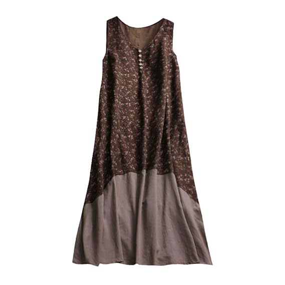 Buy Wyfeay Vintage Plus Size Women Dress Cotton And Linen Patchwork Casual Loose Boho Party Dress Summer Style Retro Robe Femme Vestidos Coffee At Amazon In