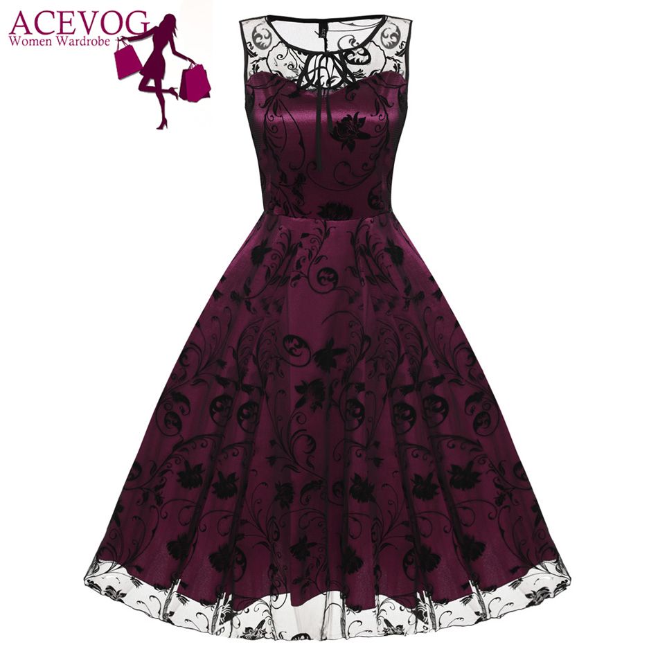 Acevog Retro Women Vintage Style Sleeveless Mesh Embroidery Long Cocktail Party Dresses Flower Skull Ball Grown Party Femme Robe Y Green Dresses Cheap Summer Dresses From Tao02 23 58 Dhgate Com