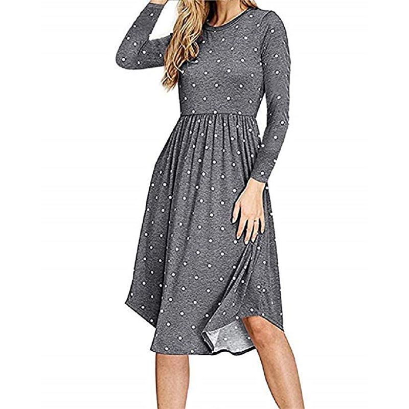 Wisremt Vintage Polka Dot Printed Dress Robe Femme Autumn Winter O Neck Pockets Dress Casual Dress Long Sleeve Midi Dresses Walmart Com Walmart Com