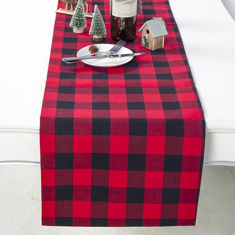 Chemin De Table Rouge A Carreaux Pour Noel Decoration De Table De Noel Decoration De Fete D Anniversaire Aliexpress