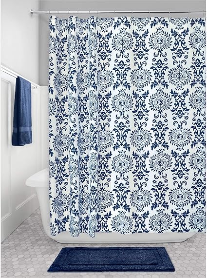 Interdesign Damask Rideau Douche Rideau Baignoire Design 1 0 Cm X 1 0 Cm En Polyester Rideau De Bain Qualitatif A œillets En Metal Bleu Marine Amazon Fr Cuisine Maison