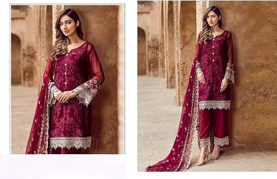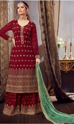 Faux Georgette Embroidered Pakistani Salwar Kameez In Maroon