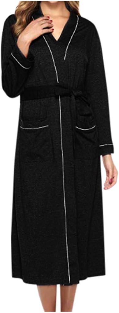 Boluobao Robe De Chambre Longue Femme Courtelle Hiver Peignoir Femme A Fermeture Avec Poche Mode Manches Longues Printemps Automne Hiver Femme Tenues De Nuit Lingerie Et Sous Vetements
