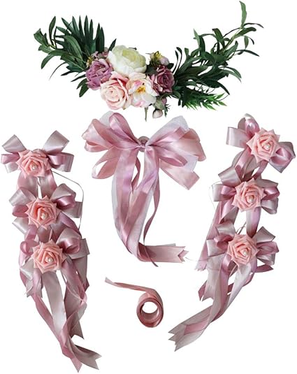 Baoblaze Kit De Decoration Voiture De Mariage 1 Gros Noeud 6 Archets Fleurs 1 Assiette Fleur Rose Poussiereux Amazon Fr Cuisine Maison