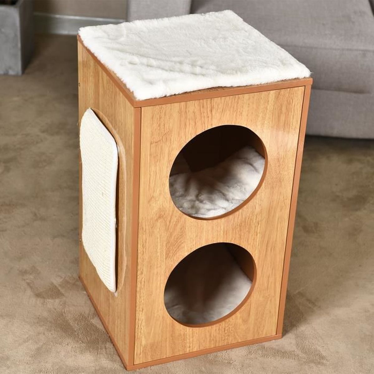 Niche D Arbre A Chat En Bois Avec Griffoir Et Coussin En Forme Table De Chevet Jouet De Chat 35x35x61cm Beige Achat Vente Arbre A Chat Niche D Arbre A Chat En