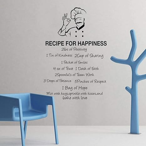 Amazon Com Wall Stickers Murals Large Recipe For Happiness Quote Wall Decal Kitchen Dinning Room Inspirational Love Hope Quote Wall Sticker Chef Cuisine Vinyl x56cm Kitchen Dining
