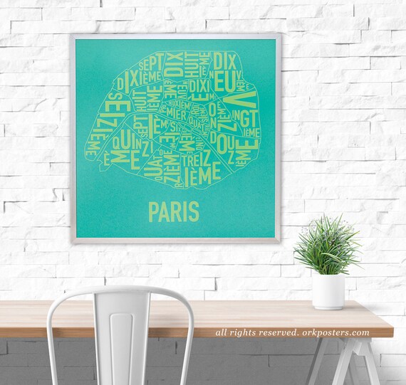 Paris Arrondissements Carte Poster Ou Imprimer Original Etsy