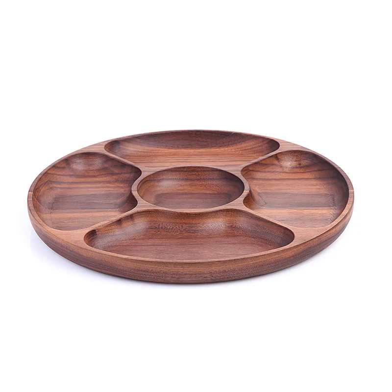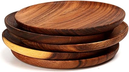 Assiettes En Bois Rondes Plateau De Service En Bois D Acacia Samazon