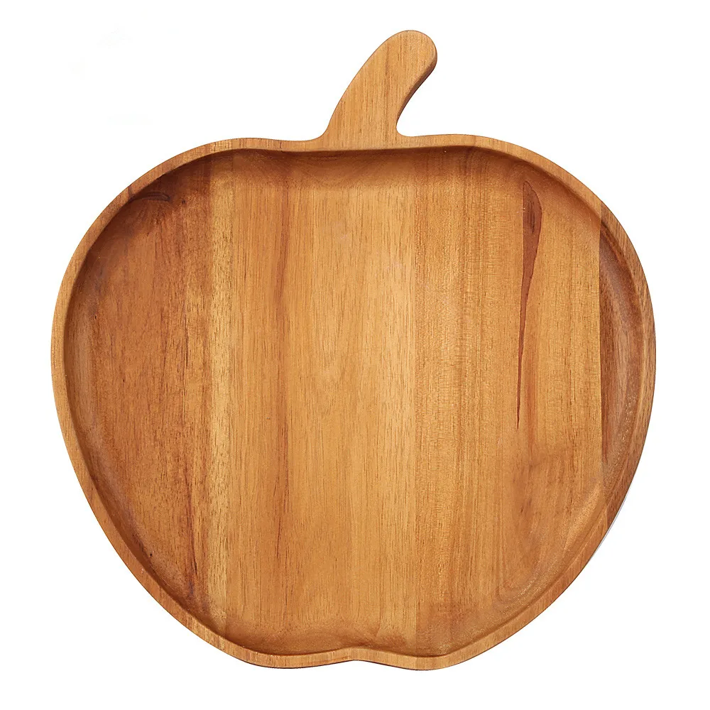 Plateau De Service En Bois D Acacia Vaisselle Creative Apple Stlye Assiette De Table En Bois Pour Fete Plateau En Bois Pour Collations Fruits Faits A La Main Aliexpress