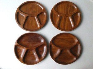 4 Assiettes Ou Plats De Service En Bois En Teck Des Annees 70 80 Ebay