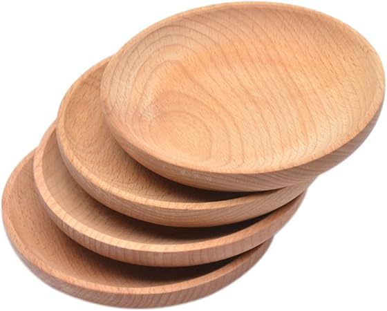 Assiette De Service En Bois De Hetre 4 Pieces Plateau De Service Rond Dessert Aux Gateaux Dessert Aux Fruits Salade De Bonbons Plateau En Bois Pour La Cuisine Ou Decorer 4pcs Amazon Fr Cuisine