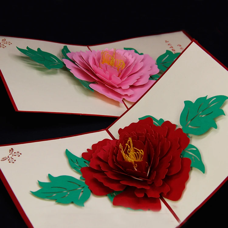 3d Pop Up Carte Postale D Anniversaire De Noel Nouvelle Annee Pliant Kirigami Carte Pour Le Mariage De Valentine Jour Pivoine Motif De Voeux Cartes Aliexpress