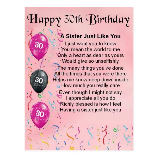 Carte Postale 30eme Poeme De Soeur D Anniversaire Zazzle Ca