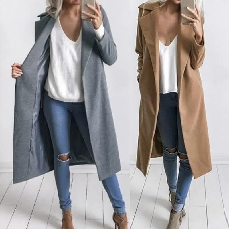 16 Autumn Winter Women Woolen Long Jacket Coat Lapel Pockets Solid Casual Outwear Female Cardigans Overcoat Abrigos Mujer In Wool Blends From Women S Clothing Accessories