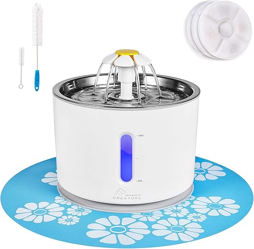 Fontaine A Eau Pour Chat En Acier Inoxydable Avec Indicateur Led Pour Alerte De Penurie D Eau Fontaine Avec 3 Filtres 1 Tapis Et 2 Brosses De Nettoyage Fenetre De Niveau D Eau Amazon Fr
