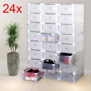 24 Boite A Chaussures Plastique Housse Tiroir Stockage Empilable Rangement F Ebay