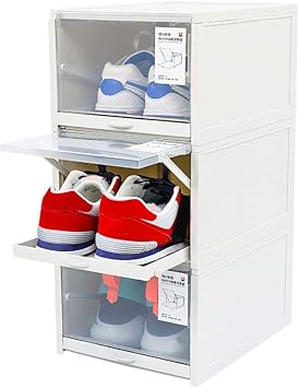 Difu x Boite De Rangement Boite A Chaussures Boite De Rangement De Chaussures Boite A Chaussures Transparente Tiroir En Plastique Pliable Armoire De Rangement Empilable Amazon Fr Cuisine Maison