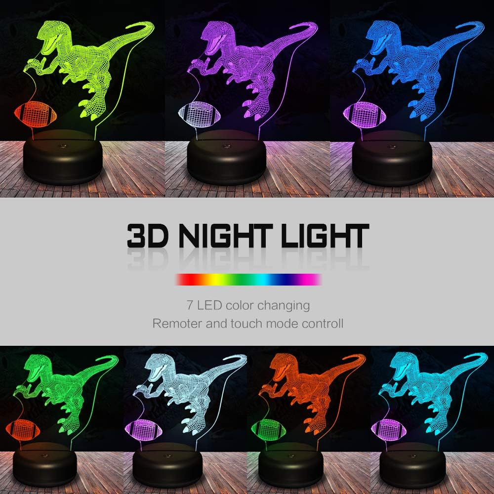 Qilitd Led Lampe 7 Changement De Rgb Couleur Tactile Interrupteur Decoration Anniversaire Cadeau Noel Pour Bebe Enfant Ado Femme Homme Dinosaure Rugby 3d Lampes Couleur Epissure Avec Telecommande Luminaires Interieur Ameublement Et