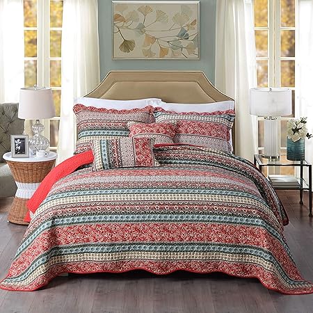 Cuisine Maison Dessus De Lits Et Couvre Lits Qucover Couvre Lit Matelasse Couverture Courtepointe En Coton 100 Parure De Lit Climatisation Couette Style Boheme Raye De Rouge Lit 1 Personne