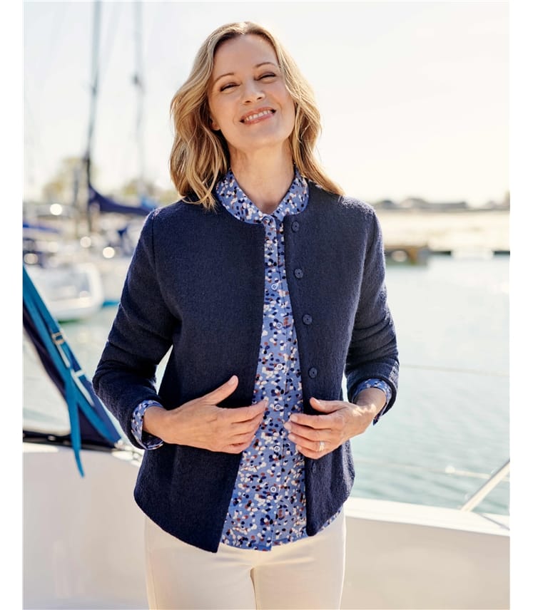 Bleu Nuit Veste En Laine Bouillie Femme Pure Laine Woolover Fr