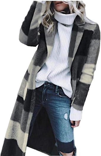 Dahuo Manteau A Manches Longues En Laine Pour Femme Style Vintage Motif Carreaux Gris Small Amazon Fr Vetements Et Accessoires