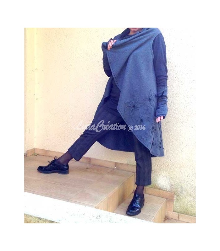 Gilet Long Sans Manche Femme Chic Et Universel En Laine Bouillie Grise Fonce Taille Unique Ludacreation